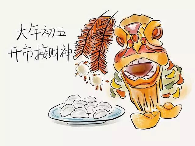 初五又被称为“破五”,这一天对于商家来说是个大日子,祈求一年财源广进,迎财神正是这天。
