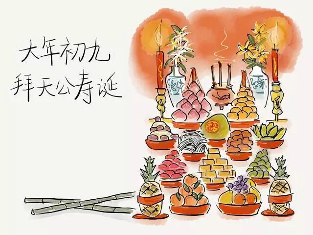 正月初九是天日,俗称”天公生“,传说此日为玉皇大帝生日。主要习俗有祭玉皇、道观斋天等,有些地方,天日时,妇女备清香花烛、斋碗,摆在天井巷口露天地方膜拜苍天,求天公赐福。