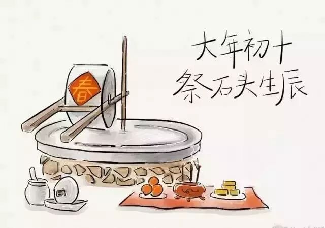 这一天凡磨、碾等石制工具都不能动,甚至设祭享祀石头,恐伤庄稼。也称“石不动”、“十不动”。河南风俗这一日家家向石头焚香致敬。午餐必食馍饼,认为吃饼一年之内便会财运亨通。在山东郓城等地有抬石头神之举。初九夜,人们将一瓦罐冻结在一块平滑的大石头上,由十个小伙子或十个小姑娘轮流抬着瓦罐走。石头不落地则预示当年丰收。
